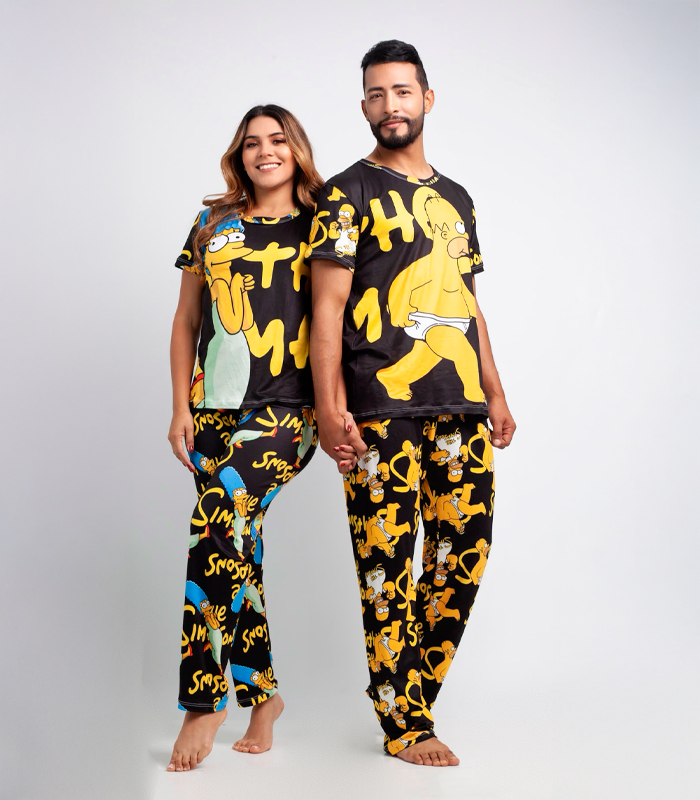 Diviértete y descansa junto a tu persona favorita con estas pijamas en pareja inspiradas en Los Simpson. La de ella luce a la tierna e inocente Marge, mientras que la de él resalta al irreverente y divertido Homero.